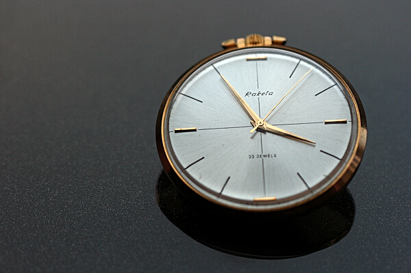 w pięknym stanie, jedyne zastrzeżenie do wskazówek, ale to chyba standard w tym modelu (zastanawiam się czy kłaść wypełnienie na nowo, czy zegarek nie straci wtedy charakteru) ale tak czy siak to bardzo ładny i pożądany przeze mnie model (30 zł) :)