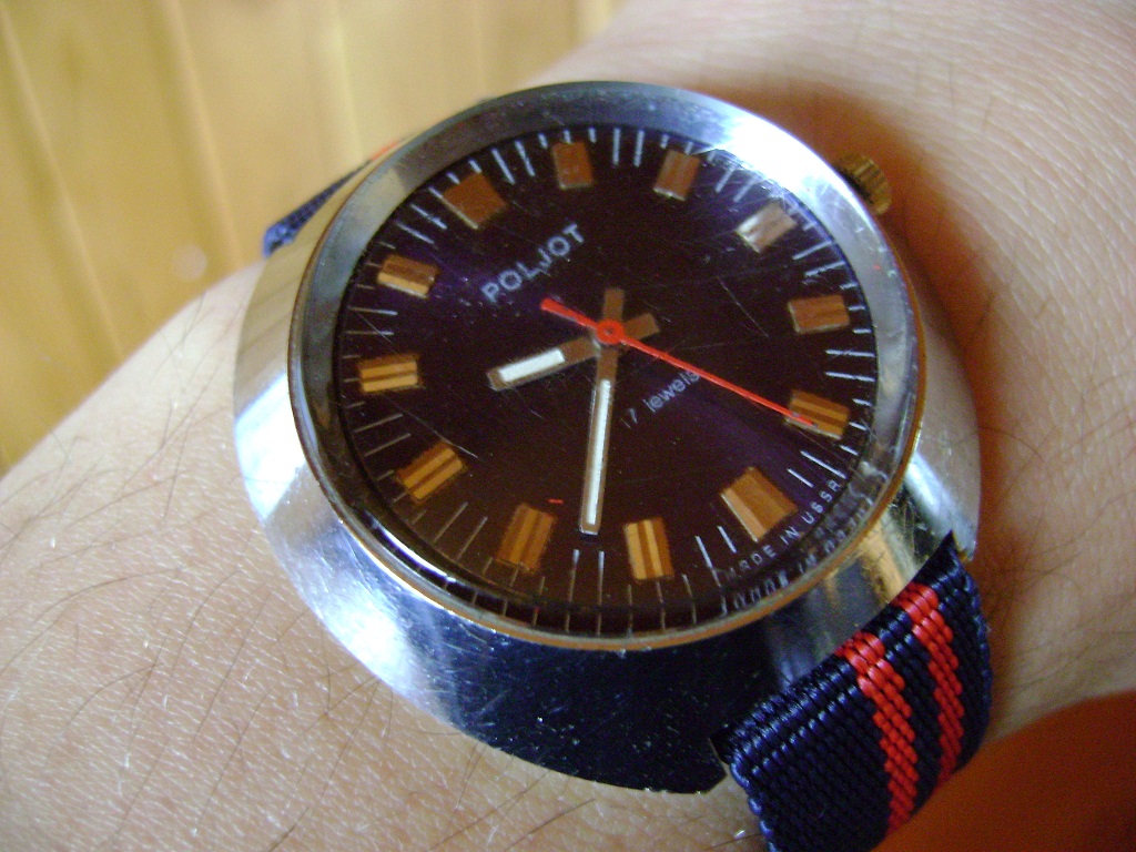 Ten Poljot z granatową tarcza jest w niezłym stanie.