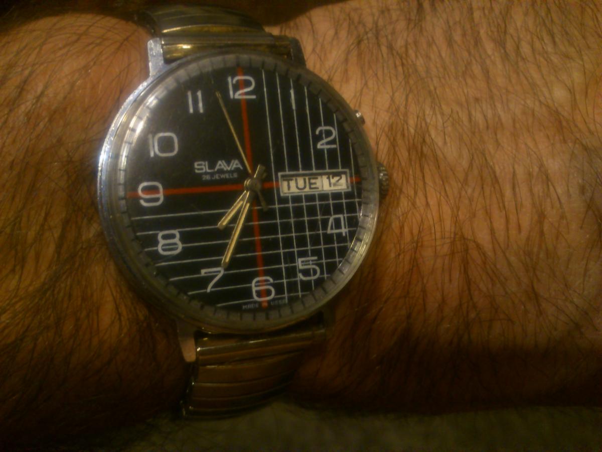 Łej tam przybrudzony i porysowany... Jest ładny, dobry stan!  ;) Miły zegarmistrz ci szlifnie szkło nawet za darmo i będzie elegansio :) Koperta jest w niezłym stanie(że o tarczy nie wspomnę) Choć jest chromowana, to ją delikatnie też można wyszlifować :)