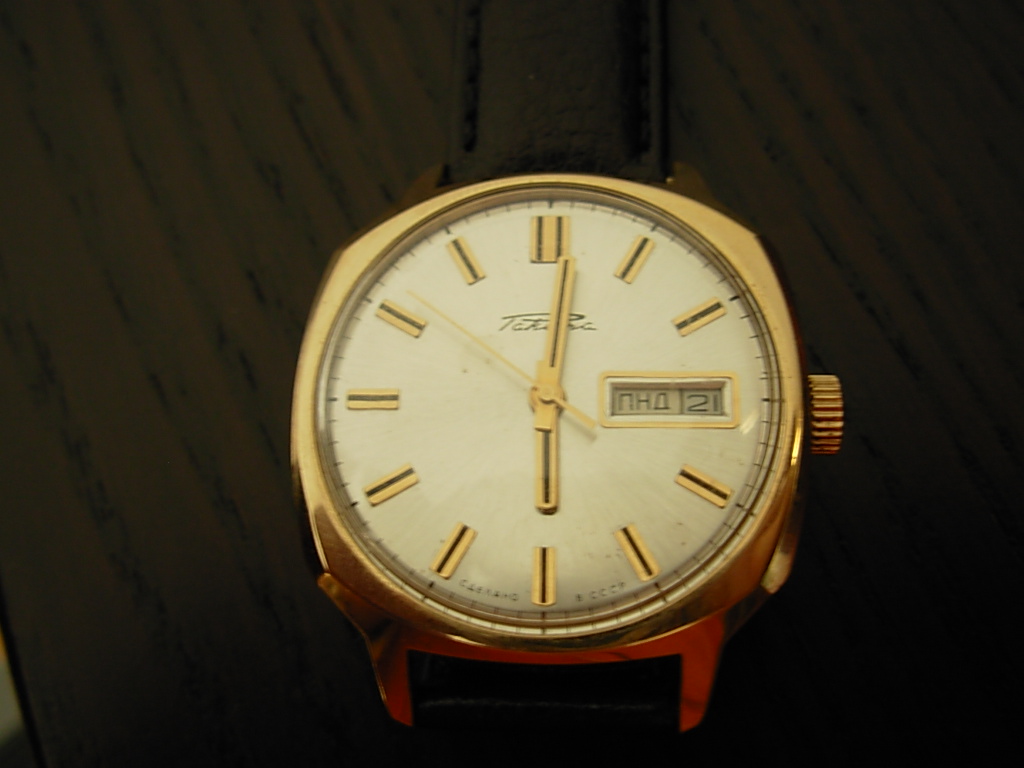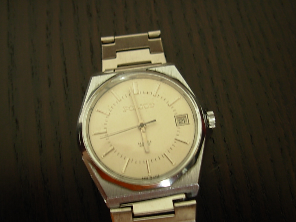 Fajny poljocik, bardzo ładnie, niemalże idealnie na oko wygląda koperta, tarcza trochę zmęczona życiem, ale chociaż widać, że przeżył Breżniewa (a jak Ci nie będzie pasować to w miarę łatwo znaleźć zegarmistrza który będzie miał gdzieś dobrą w rupieciach za parę groszy), a i dzięki temu może cena nie poszybuje w kosmos, a potrafi czasem przy tym modelu niebywale blisko kosmosu być, choć i tak daleko od kosmosa (tego jego bliźniaka z datownikiem w formie wskazówki)