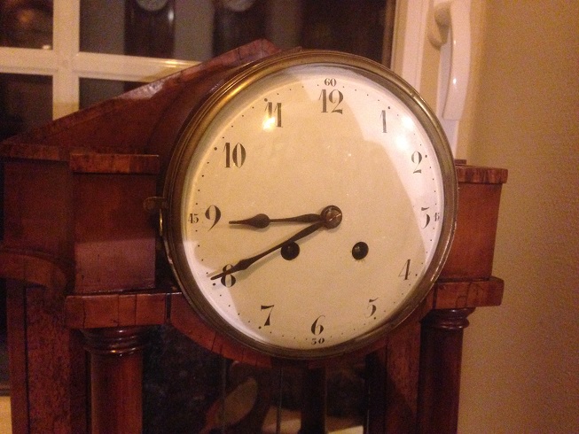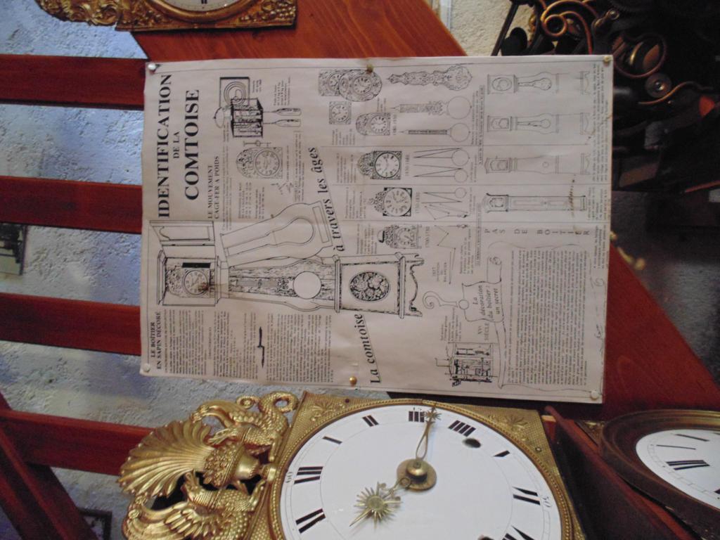 IMO wszystko jak w zwykłym Comtoise, brakuje tylko frontu z mosiężnej tłoczonej blachy (ale takie też były- oszczędność?). Wahadło typu "lira" było chyba późniejsze.