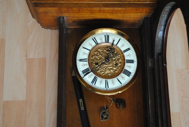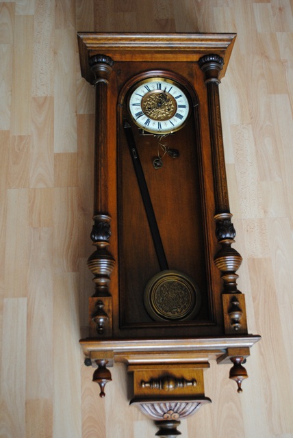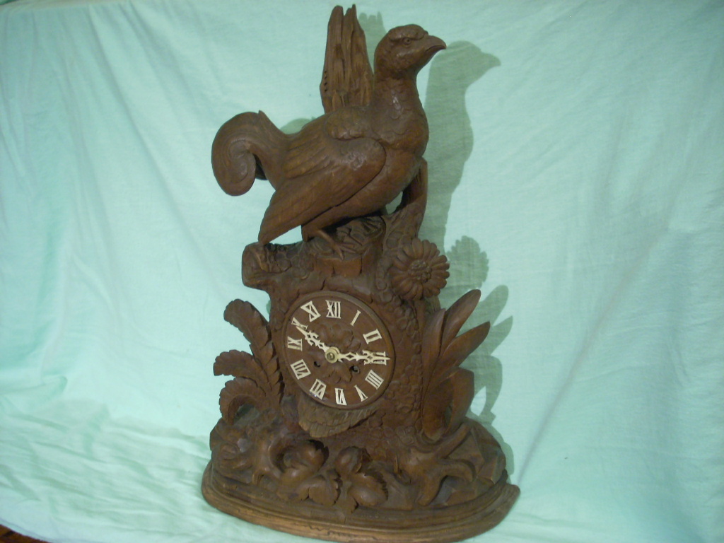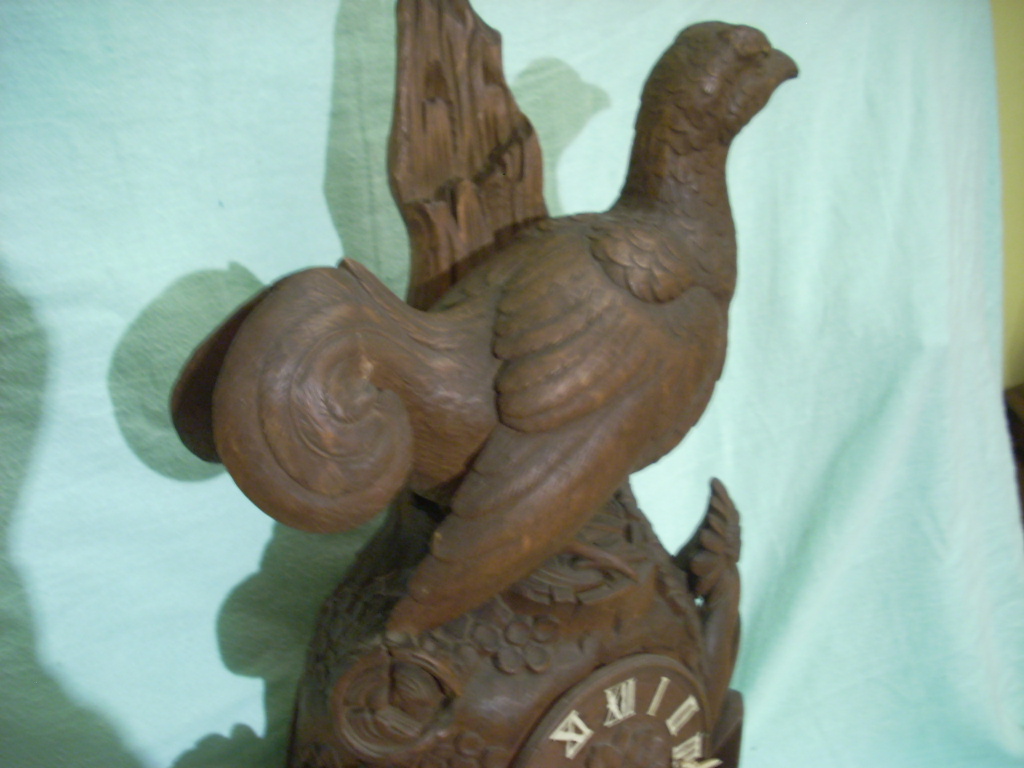 Przedstawiam moj przedwczorajszy poznanski nabytek.Jest to zegar Lenzkirch wyrzezbiony z jednego pnia drewna orzechowego.( Cietrzew) Zegar przedstawia bardzo bogatą rzeżbę roslinną.Tarcza (plasorzezba) wykonana rownierz z tego samego drewna.Cyfry i wskazowki wykonane z kosci zwierzęcej.Wysokość -50 cm ,szerokosć-37 cm ,grubość-14-cm. Mechanizm numer 255588 z 1861 roku