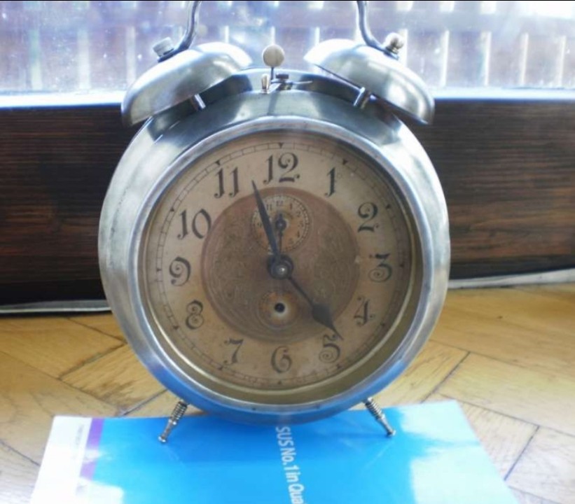 Jeszcze raz powtórzę: obudowa z tarczą, podkładką są od jakiegoś budzika o nazwie Patent. Reszta z dzwonkami od innych. Była świetna zabawa w odbudowie takiego budzika. I to jest najważniejsze.