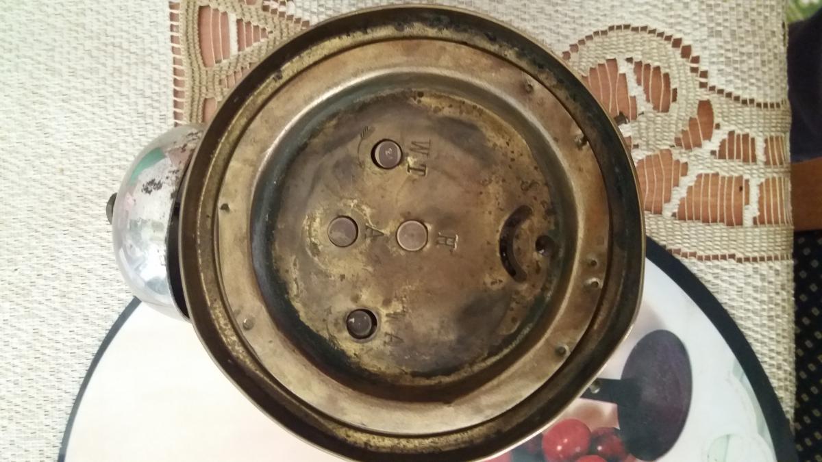 Duży, śr. tarczy 13 cm, tylnego dekla 18 cm, tarcza wytłaczana, sprzedawca określa że może pochodzić z ok. 1905 r?