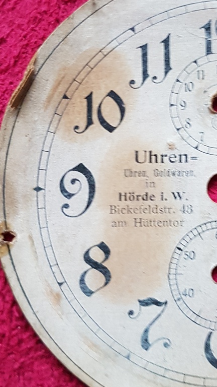 Na dniach wezmę się za mojego Junghansa "Tapageur" z ok 1905r/na zdjęciu/ którego tarcza uległa ok 70% poprawie po benzynie kilka miesięcy temu. Jednak jak widać lekki niedosyt pozostał. Gdzies chyba na forum powinny być fotki jak wyglądał kiedyś ale nie mogę znaleźć. W moim zdjeciu profilowym możecie podejrzeć.