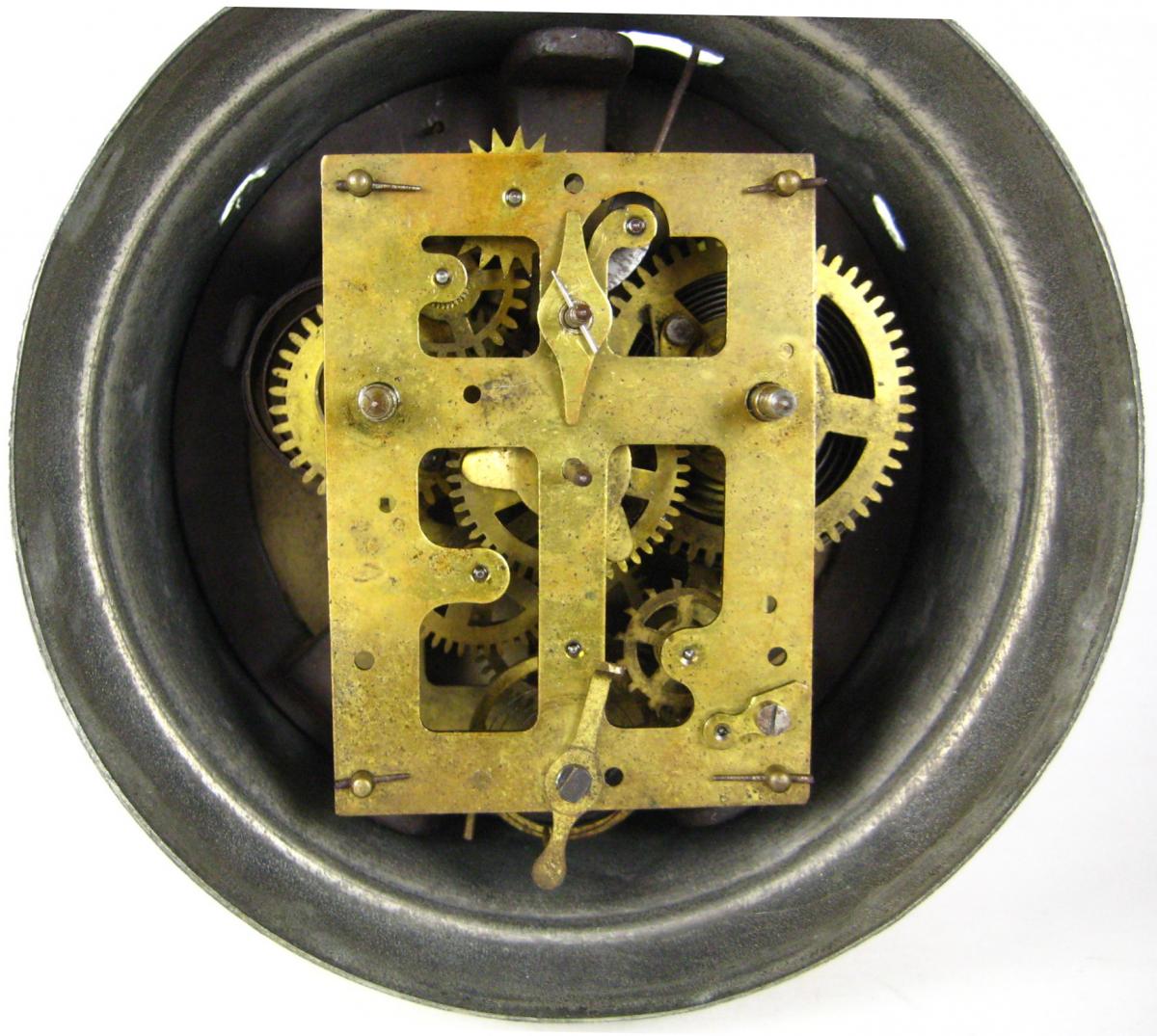 Mechanizm, tarcza, koszyczek - wszystko ok. Nie kombinowane w komplecie od lat. Tarcza do koszyczka przytwierdzona mosiężnymi gwózdkami - widać, że kupe lat temu. I na tym kończą się dobre słowa o tym egzemplarzu.
