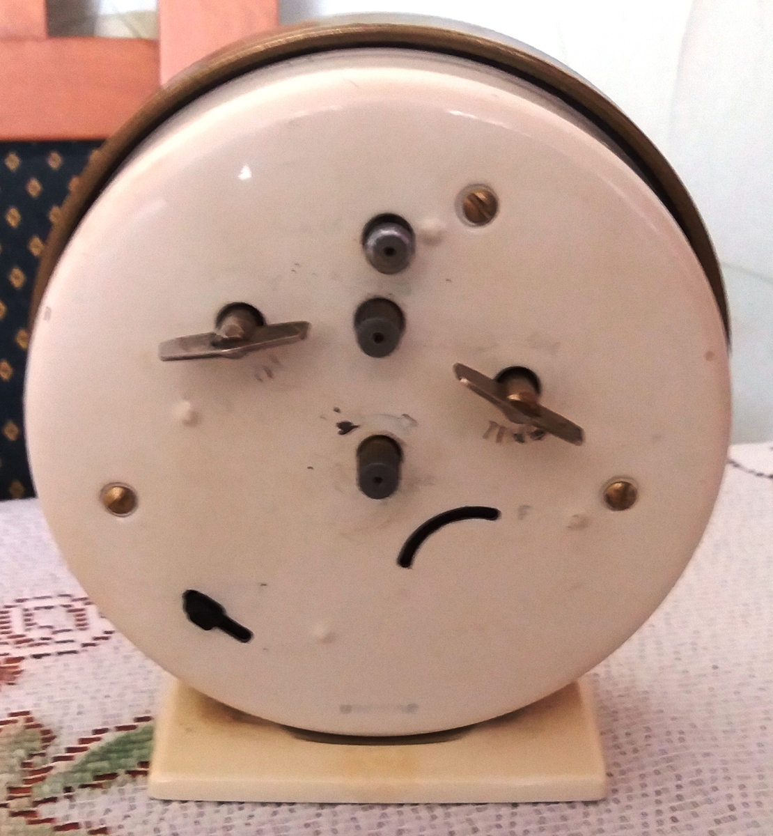 JAZ solidny ,typowy ale ładnie zachowany a Tapageur o trochę innej konstrukcji puszki i czaszy dzwonka większej od korpusu budzika😀pokrętła wprawdzie dorabiane ale faktycznie dość specyficzne i trudne do znalezienia(bardzo długie) mechanizm też  solidny z wielkim kołem balansowym.Nie znalazłem na mechanizmach żadnych datowań więc nie bardzo wiem jak je datować,wyglądają na lata 30-40?