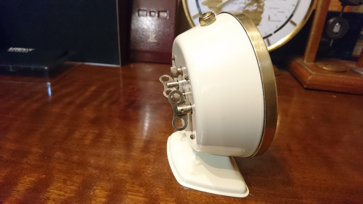 P.s zastanawia mnie fakt, że każdy z posiadanych przeze mnie egzamplarzy jak i ok 5 innych, które przez lata widywałem na różnych aukcjach posiada inne tylne nóżki a mój jeden jak widać nawet postument. Nie widziałem żadnego z identycznym bliźniaczym postumentem lub nóżkami w tylnej części budzika a grafika katalogowa prezentuje tylko przód.