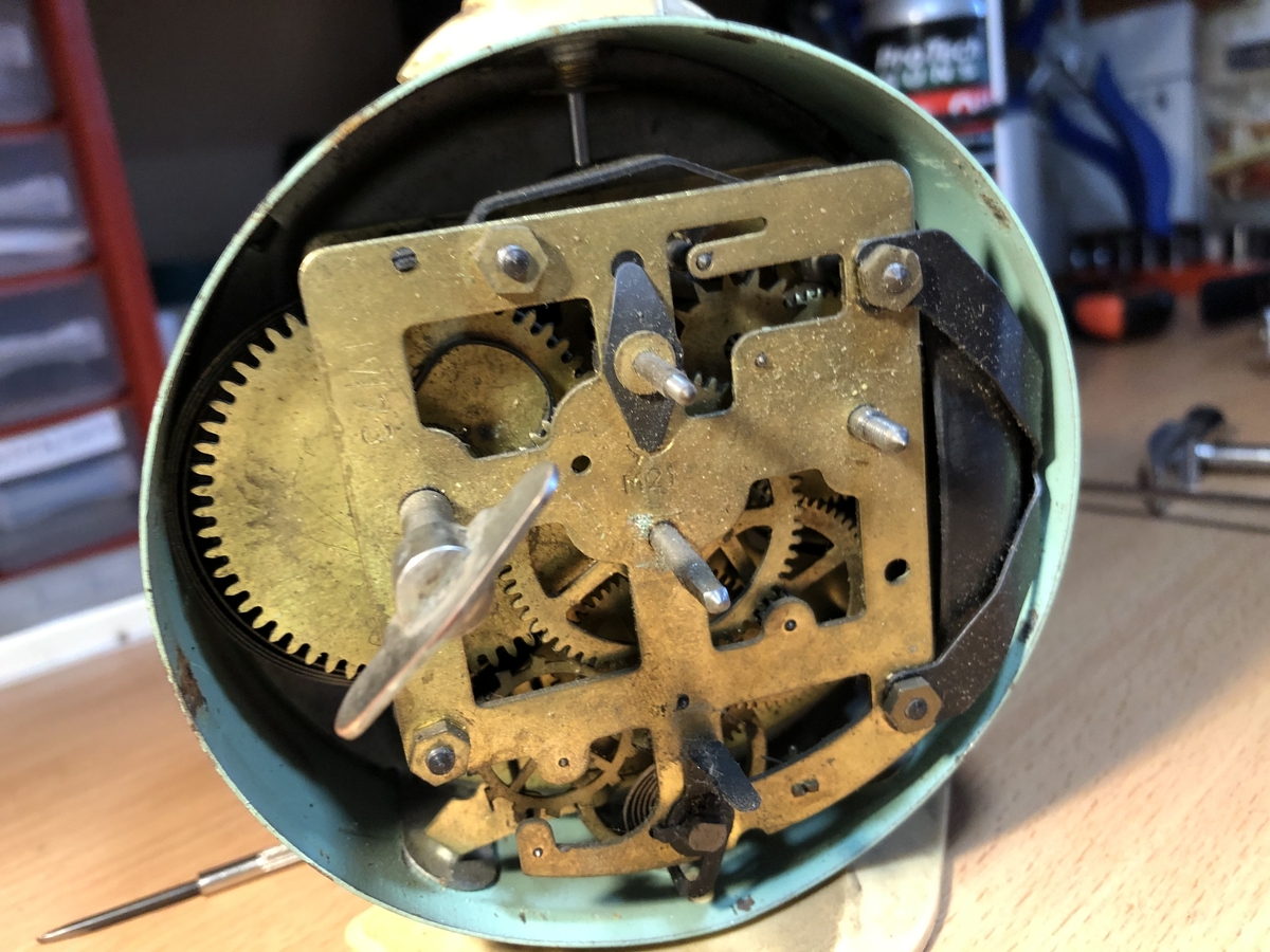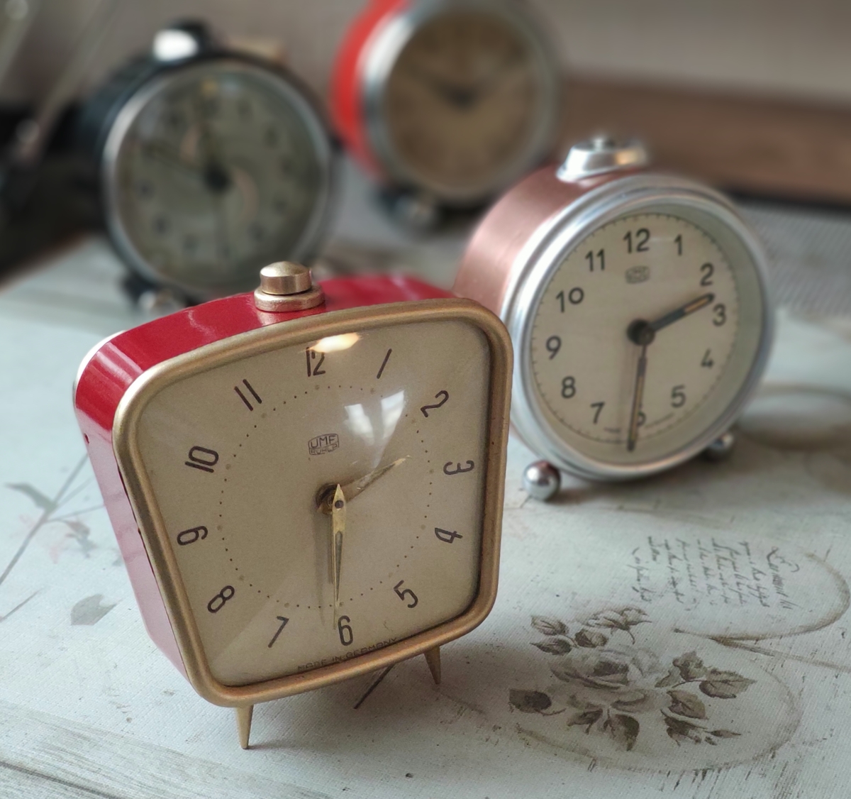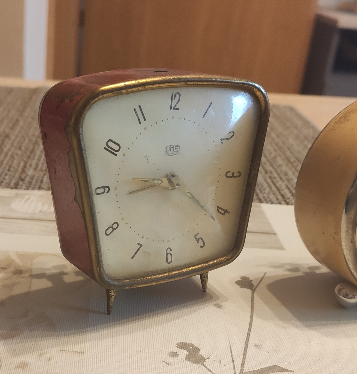 Co do braku obojętności. Na zdjęciu jest dosłownie pierwszy budzik, który ujrzały moje oczy po urodzeniu. Ma mniej więcej tyle lat co ja. Był w sypialni w domu rodzinnym. Też swoje przeszedł, ale nie był wyrzucony na złom. Kilkadziesiąt lat przeleżał w garażu, w opłakanym stanie. 10 lat temu jeszcze samodzielnie nie naprawiałem budzików. Mechanizm został naprawiony w zakładzie zegarmistrzowskim a później po latach w Internecie natrafiłem na dawcę brakujących elementów, (ramka i  tarcza).  Zniszczoną tarczę zachowałem oddzielnie. Świecące w nocy wskazówki bardzo mocno działały na moja dziecięca wyobraźnię.