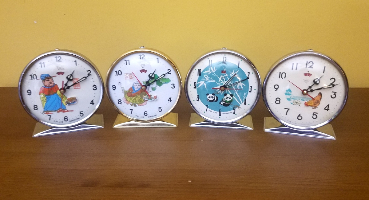 Ciag dalszy budzikow z animacja na tarczy  produkowane w Chinach lata 70 te