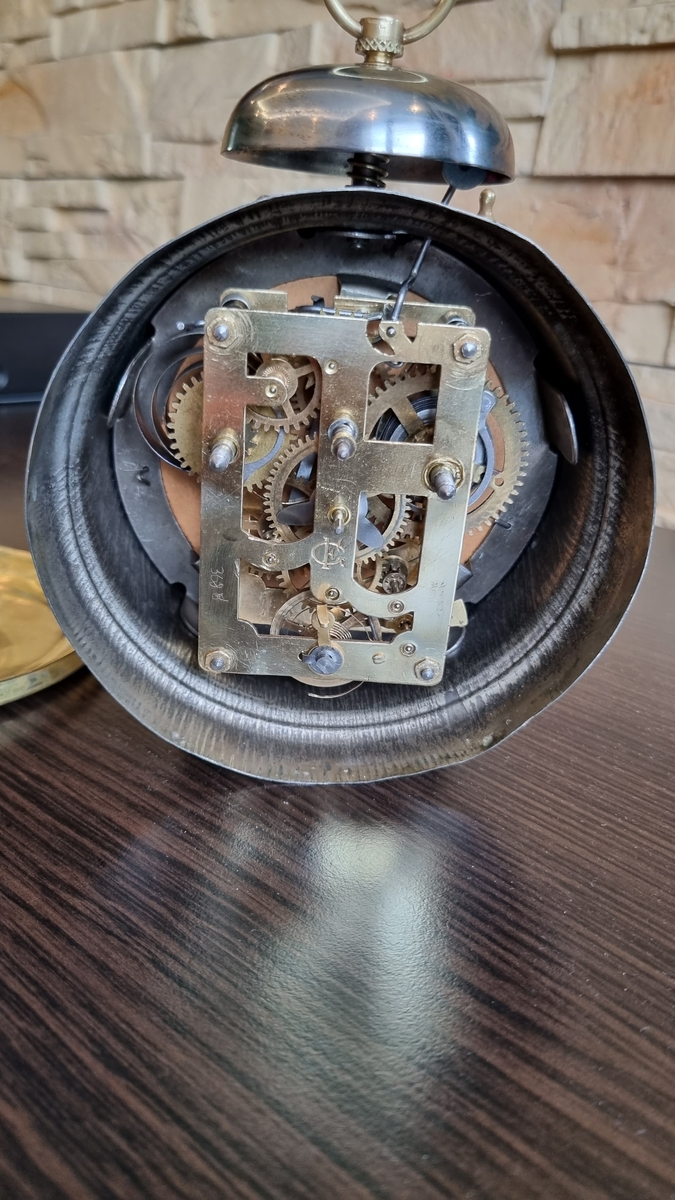 Kolejny amerykański budzik ,tym razem z fabryki William Gilbert Clock Co. z 1925r. Kupiony w stanie nie tragicznym , ale wymagajacy  przeglądu i  połatania puszki . Niestety pęknięcia cieniutkiej blachy mosiężnej nie są tak łatwe do polutowania ze względu na sprężystość i odkształcenia więc pozostały widoczne a tylko zabezpieczone przed dalszą degradacją☹️