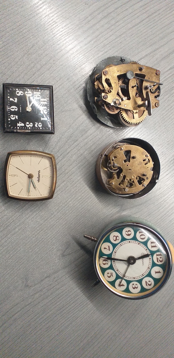 Od Kolegi Hecke otrzymałem bardzo mnie intersujący tzw. złom zegarmistrzowski. Będzie wspaniała zabawa w uzupełnianiu mechanizmów. Z wcześniejszej przesyłki kilka mechanizmów uruchomiłem a kompletne werki podróżnych zakwalifikowałem sobie , jako egzemplarze muzealne. Ciekawy jest mechanizm Sewani , bezkamieniowy, z 1956 r. Pierwszy raz się z takim spotkałem.