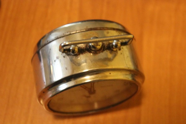 Ładnie zachowany budzik Kienzle lata 30?Nikiel nieprzetarty z niewielkimi uszkodzeniami ,po czyszczeniu i konserwacji wygląda całkiem dobrze :) .Ciekawe jest wyłączanie dzwonienia poprzez kładzenie uchwytu a i otwieranie budzika ułatwia tylna ruchoma stopka ,którą wysuwamy zaciskany dekiel puszki budzika.Wielkość okazała, 13 cm.kienzle%20prz%C3%B3d.JPGty%C5%82%20kie.JPGwy%C5%82%20dzwonka.JPGstopka.JPG
