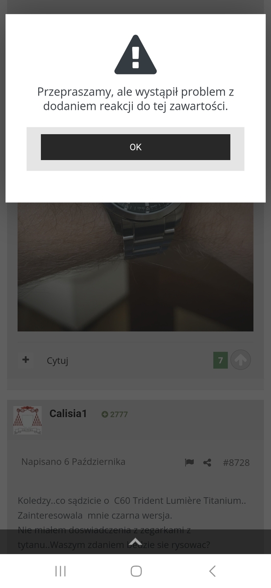 Chcialem polubic ostatni wpis w watku Grand Seiko i wtskoczyl mi blad. Po odswiezeniu widze,ze lajk jest. Dziwne.