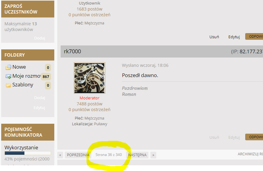 Nowe również działają, ale tak jak piszecie lokują się na byle jakiej stronie. Np mam 10 kart rozmowy i nowe PW w tej samej ląduje na 2 karcie, reszty nie ma.