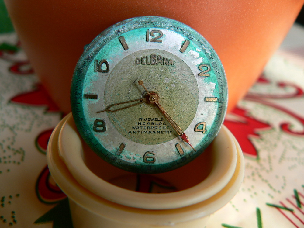 Wiem że szlif genewski ni jak się ma do Delbany,  ale kupiłem ją ze względu na nietypową tarczę , a werk po kilku obrotach koronki ożył :)