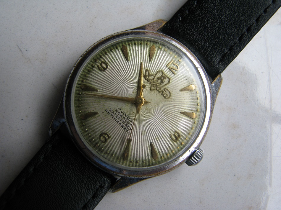 Była na forum dyskusja, bo byłem przekonany, że to tarcza po renowacji z lat siedemdziesiątych, ale przekonano mnie, że takie były na początku lat pięćdziesiątych. Twoja jest trochę inna, ale wykonana w podobnej technologii. Była również dyskusja na temat nieoznakowanych mechanizmach w Delbanach. Bardzo rzadko, ale podobno się zdarzały, czy Twój jest oryginalny, chyba nikt głowy nie da. Każdy nieoznakowany mechanizm obciążony jest pewnym procentem niepewności, że może to być składak.