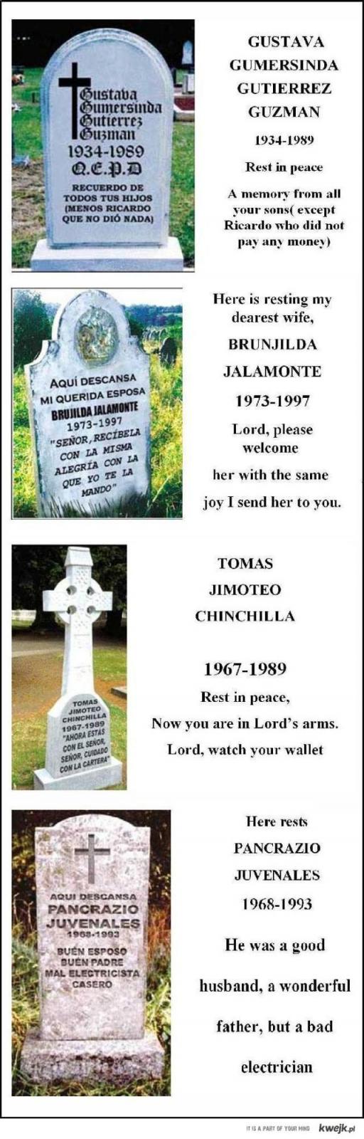 kiniol 2281 #691 Napisano 26 Listopada 2013 Podczas jednej z moich Bałkańskich podróży zrobiłem fotki na cmentarzu, gdzie rzeźbione w drewnie nagrobki ukazują min. przyczynę śmerci denata: Uwielbiam Rumunię... 0 Porządek na serwisie o niczym nie świadczy. Często najlepsze usługi świadczone są przez geniuszy w totalnym bałaganie… Udostępnij tę odpowiedź Odnośnik do odpowiedzi Udostępnij na innych stronach