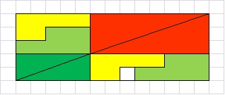 WueM 120 #792 Napisano 14 Grudnia 2013 Prezentowana zagadka nie ma nic wspólnego ani z geometrią nieliniową ani z hipotezą Riemanna. Nie ma co się silić na pseudonaukowy bełkot. Suma kątów w czerwonych i zielonych trójkątach wynosi tu 180 stopni i kropka. Cała rzecz rozgrywa się na płaszczyźnie w ramach euklidesowej geometrii, co widać na poniższym obrazku. Pole prostokąta wynosi 65 kratek, pole górnego "trójkąta" to 32 kratki a pole dolnego 33 i wszystko się zgadza. PS W przedstawionej przeze mnie zagadce ze stojącym zegarem nie trzeba uwzględniać zakrzywienia czasoprzestrzeni ani odwoływać się do przestrzeni Minkowskiego. 0 Wojtek + Certina Club 2000 od lat Udostępnij tę odpowiedź Odnośnik do odpowiedzi Udostępnij na innych stronach