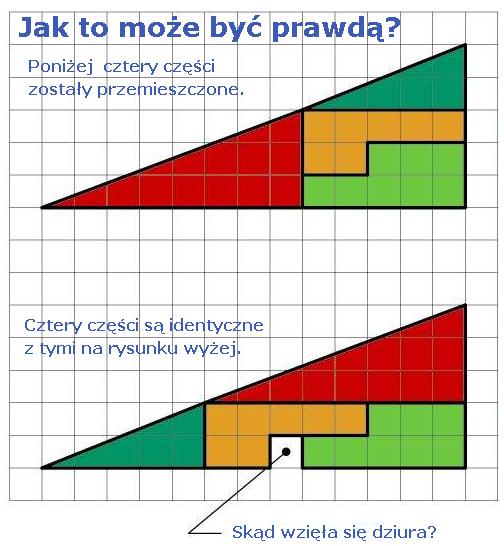 WueM 120 #789 Napisano 13 Grudnia 2013 a to jak zrozumieć W tym górnym niby-trójkącie "przeciwprostokątna" jest wklęsła, a w tym dolnym wypukła. Druga figura ma zatem większe pole - w sumie o jedną kratkę. 0 Wojtek + Certina Club 2000 od lat Udostępnij tę odpowiedź Odnośnik do odpowiedzi Udostępnij na innych stronach