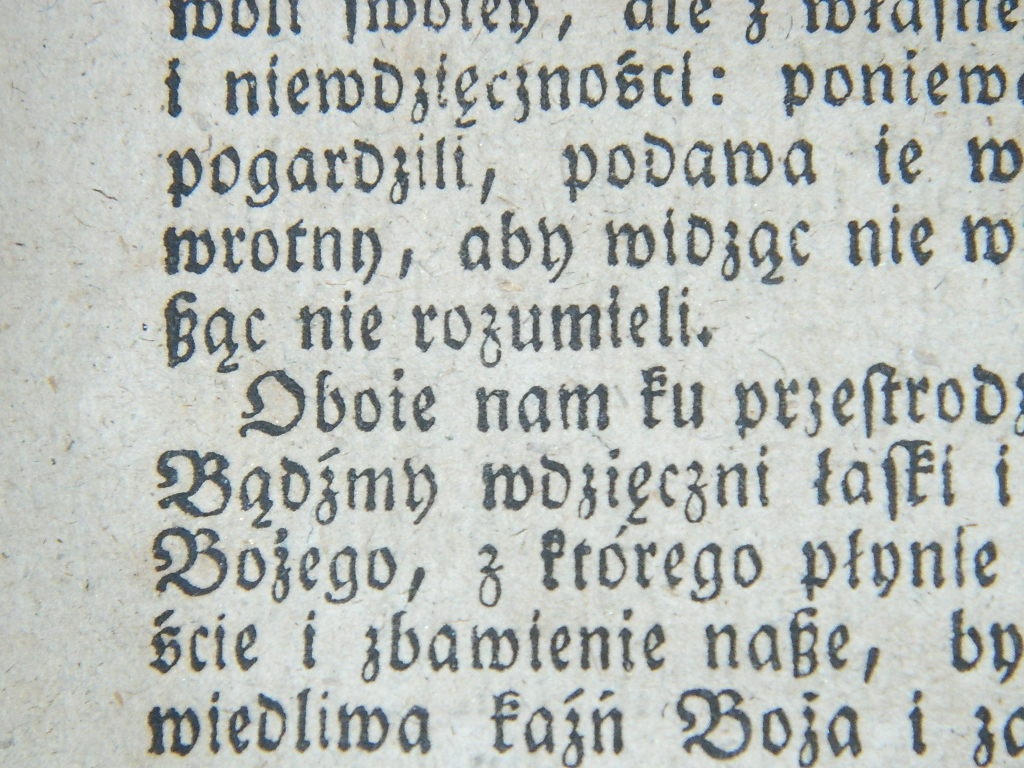 Tutaj jest tzw. "Dąbrówka", "Kazania albo Wykłady Porządne..." wydanie z 1824 roku i tu mamy zamiast "j" literę "i" oraz "y"