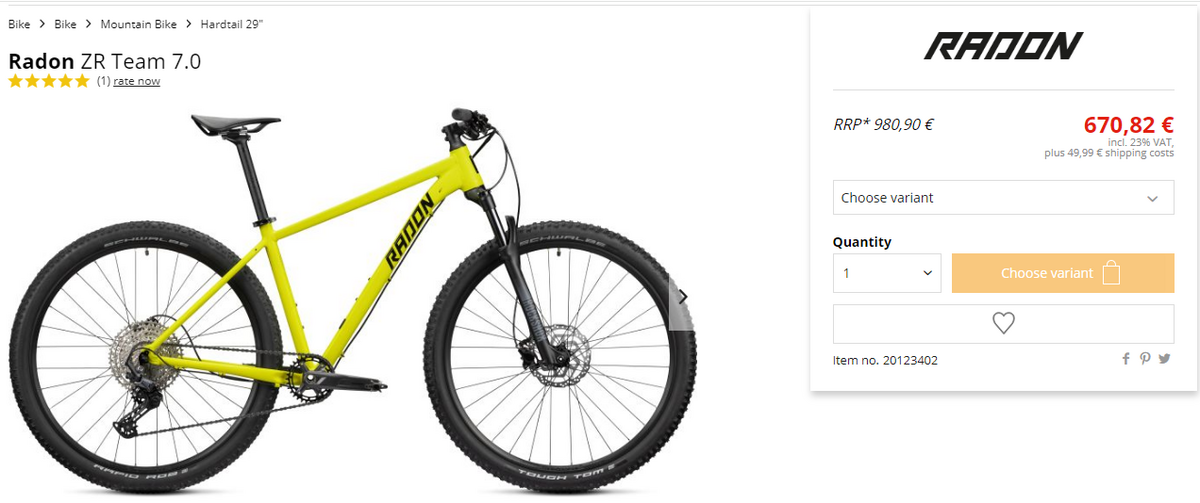 Np. XC Radon Zazdrosny ;) na Judym Goldzie za 1030 euro: