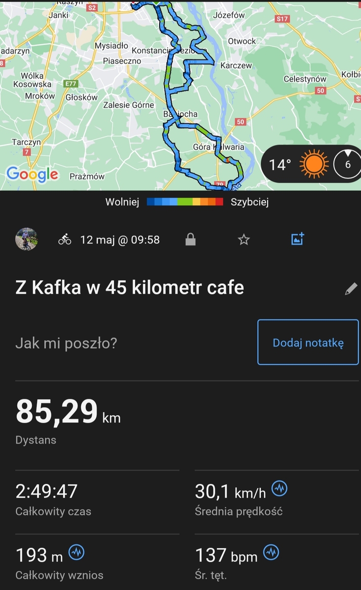 No ale zawsze wpada troche km (dzis 120) no i przygoda cala geba😬