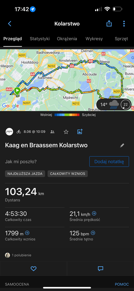 W lutym cieszyły mnie 20 kilometrowe wyjścia na rower. A dziś pękła pierwsza setka. Drogi w Holandii są super, ale strasznie tutaj wieje, 80% trasy pod wiatr.