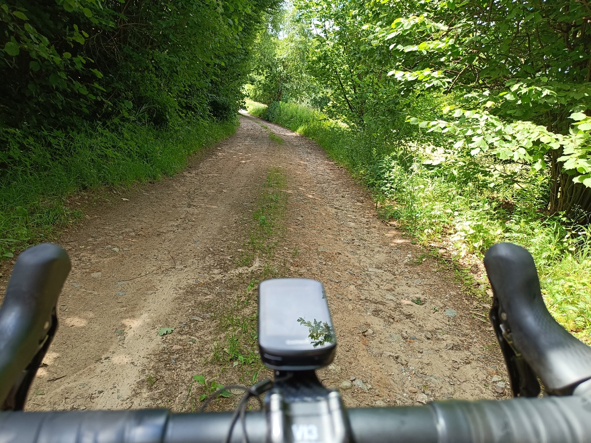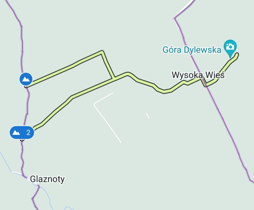 Na garminie jest zaznaczony ciekawy podjazd szutrowy z Glaznot do Wysokiej Wsi, w rzeczywistości w sporej części to prawie nieprzejezdny odcinek polno-leśny z pokrzywami zamiast szutru 😀