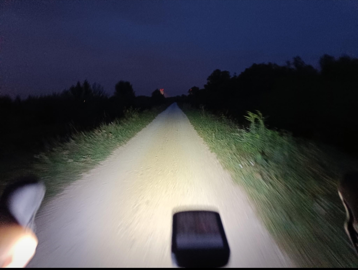Znalazłem fotkę na której widać jak ona świeci w trybie max (bateria wtedy starczy na ok 2h), ale ja jeżdżę na 3 poziomie świecenia.
