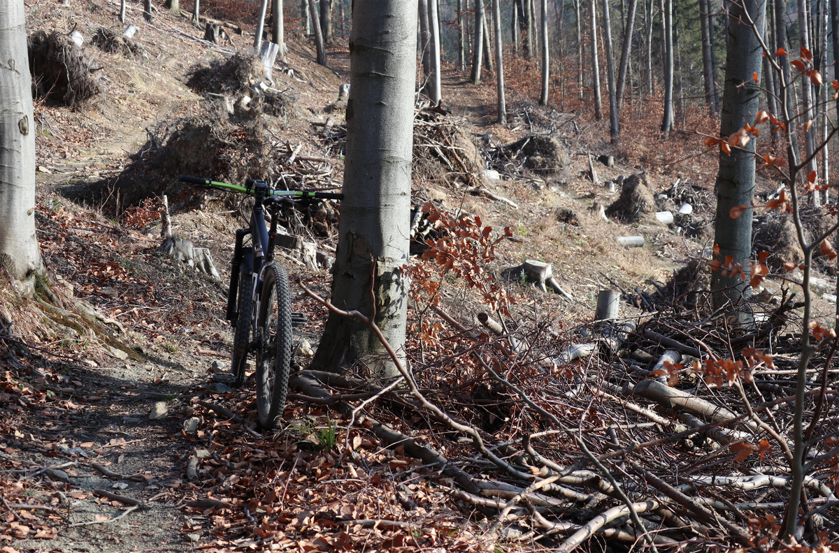 Przede wszystkim dosyć drogi był i ściskało, ale spełnia zadanie rewelacyjnie. Przemyślana konstrukcja. Przynajmniej na obecne resztki błota plecy i 4 litery czyste. Zobaczmy jak z kątem montażu przy deszczu czy nie trzeba skorygować. Minus to opieranie roweru tylnym kołem o drzewo czy słupki, trzeba uważać, żeby mu krzywdy nie zrobić albo nie przekrzywić na montażu. Chciałem go założyć do enduro, ale tak rurki tylniego trójkąta są grube na dwa palce i nie starcza gumki, żeby je objąć.