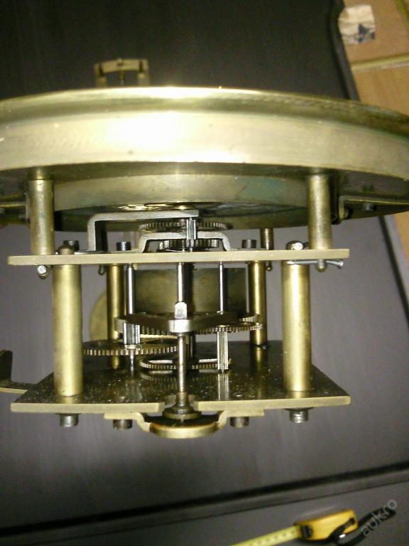 Wracając do mojego postu z 13 marca- odebrałem zegar i wymiary płyty to 81X55, numery powtórzone na mechanizmie, zawieszeniu górnym wahadła, wieszaku i tyle podkładu tarczy. Patentu przeciwzapadkowego brak. Regulacji osi wychwytowej nie ma.