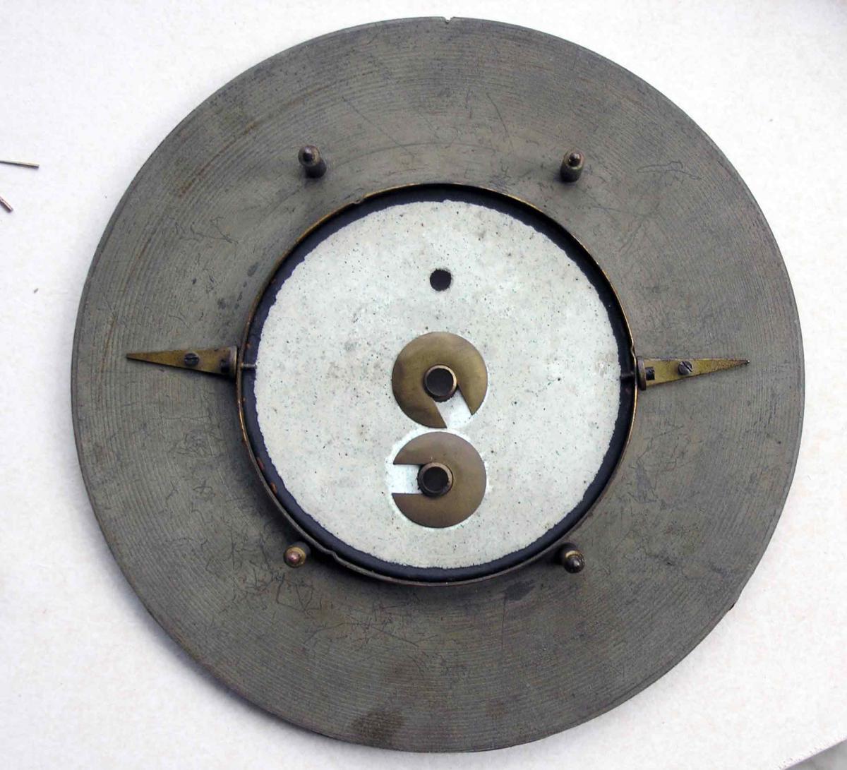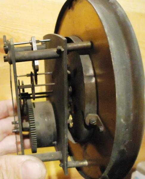 Zdjęcia są w tamtym wątku :). Dorobiłem to, czego tam nie widać. Odstęp miedzy płytami 18 mm. Na podkładzie tarczy, po zdjęciu mechanizmu- notka zegarmistrzowska.