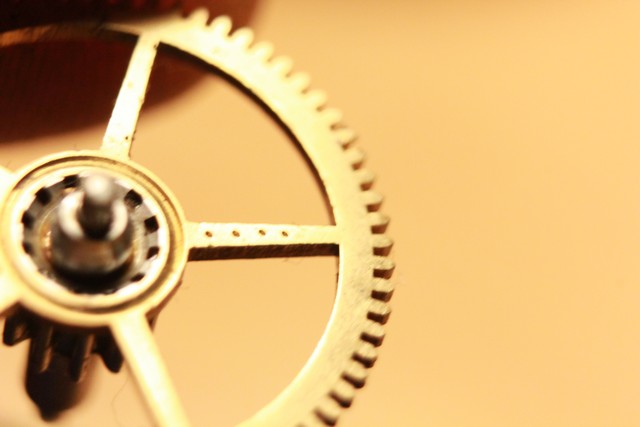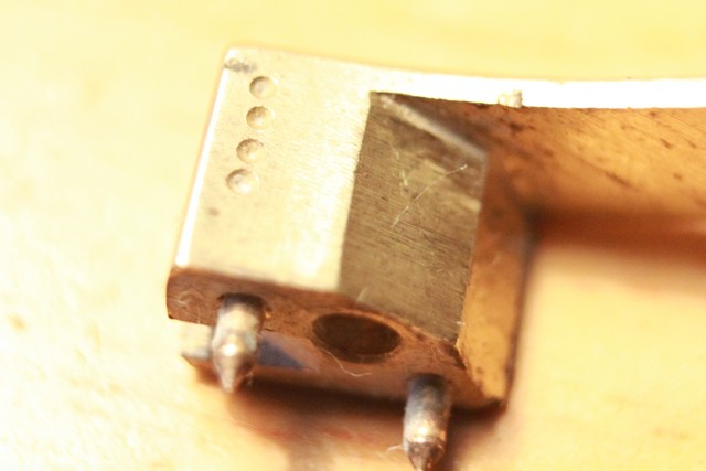 kumite 255 #920 Napisano 2 Marca 2015 Dorzucę kilka zdjęć zegara, który nazwałem Volksresch.Płyta. Nie wcelowało się nawiercenie otworu przy mostku wychwytu. Sygnatura kiepsko nabita - a jest jeszcze całkiem nowa... Mostek od tyłu: A tu drążek wychwytu od tyłu...: Kotwica. Trzy kreski na ramieniu to chyba nie przypadek, odpowiadają trzem kropkom na innych częściach. No i bęben (nie wiem czemu ten wewnętrzny dekielek ktoś wlutował - fabyka ?), Zapadkę przytrzymuje tylko sprężyna, jest jedynie włożona w otwór w "szprysze" koła : Sam bęben jest gładki, z wyraźną niedoróbką (zrobiono go z giętego kawałka mosiądzu, zaklepanego w tym miejscu ?) No i co - jesteście pod wrażeniem wysokiej jakości wykończenia ?Zbliżony numer, potwierdza moje pytanie o sygnaturę. Może i ta sama ręka nabijała na zmianie. Dodatkowo, czy kropki maja być zgodne w ilości, czy liczy się także ich ułożenie. U mnie są cztery,ale w innym ułożeniu, na drążku i wewnątrz mostka.P. 0 Udostępnij tę odpowiedź Odnośnik do odpowiedzi Udostępnij na innych stronach