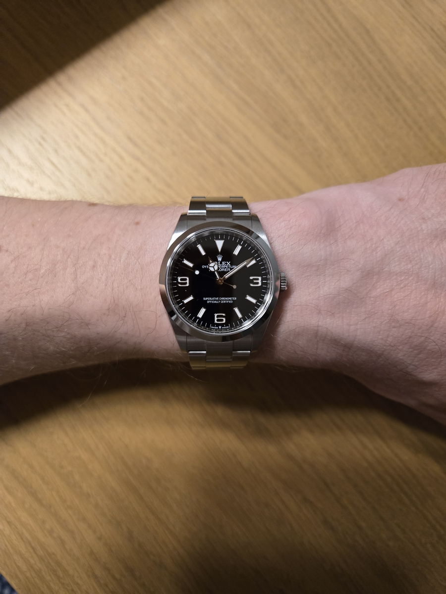 Od wczoraj jestem posiadaczem Rolexa Explorera 124270 (36mm). Wybór padł na ten model, ponieważ mam mały nadgarstek i w zasadzie wszystko co ma powyżej 36-38 mm średnicy nie pasuje mi.