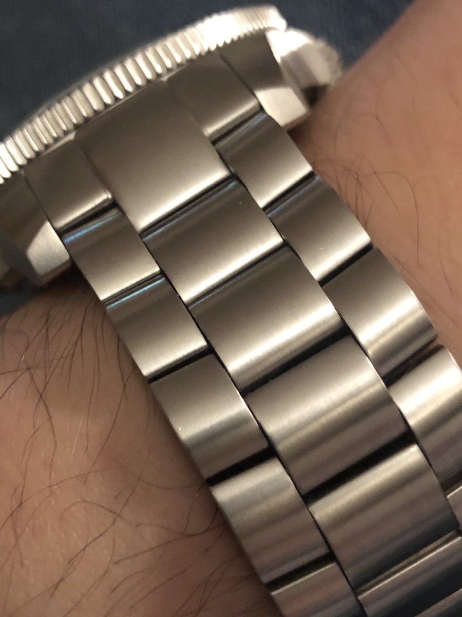 A’propos wspominanego wcześniej Aragona, który po prostu jest tani (zawsze ma promocje, czyli zawsze jest tani), za tani zdecydowanie jak na werki i wykonanie (tylko się cieszyć rzecz jasna) - chciałbym Wam pokazać jak wygląda noszona bransoleta, z jednej strony trochę siermiężna, wyglądająca ‚oldskulowo’, w rzeczywistości solidna, dobrze spasowana i wyglądająca mimo wszystko dobrze (w odróżnieniu np. od Breitlinga gdzie bransa wygląda zawsze jakby była używana, rozklekotana i jakby miała się zaraz rozlecieć). Ta z Aragona jakoś się nie rysuje... nie widzę żadnej ryski, co mnie zadziwia.