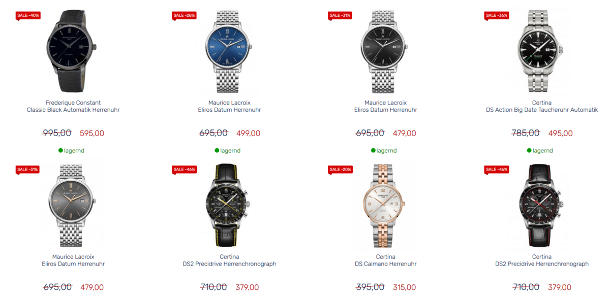 Tak się szwendam po internecie i... na uhrzeit.org mają całkiem sensowne przeceny na Certinę. Do tego jeszcze na parę modeli FC i ML.
