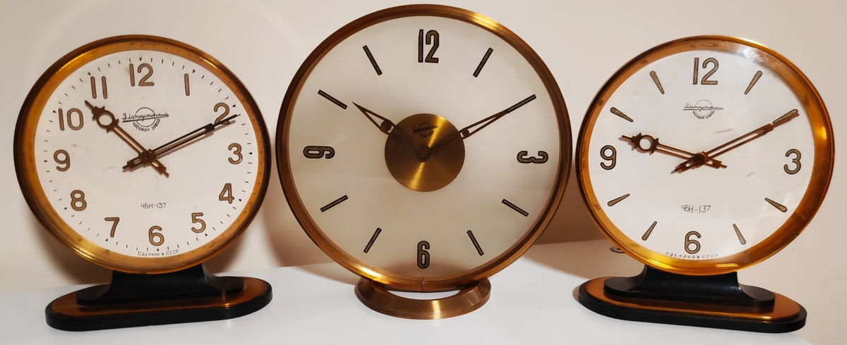 Wszystkie 3 pochodzą ze Złotoustowskiej Fabryki Zegarków. Ten w centrum to starszy model, mechanizm prawie identyczny jak w kieszonkach Złatousta, tylko inny naciąg.