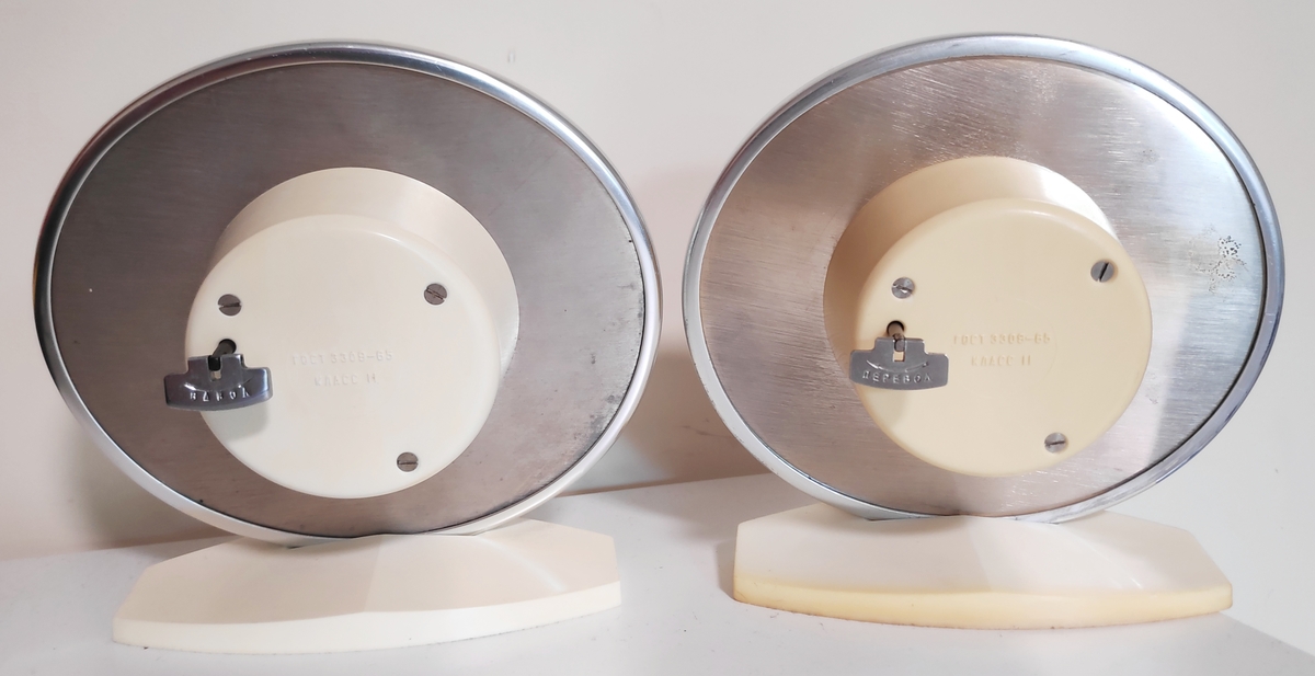 Pytanie dla znawców tematu. Popularna rosyjska kukułka Majak - mam dwie, na pierwszy rzut oka różnią się kolorem, ale po przyjrzeniu się - różnią się także innymi detalami. Przednia ebonitowa płyta w obu jest różna, napisy na tarczy są różne, boczne klapki w jednej są plastikowe uchylane na gwoździu, a w drugiej metalowe na zawiasach, zamykane drucianą zawleczką. Zapomniałem dodać zdjęcia, ale sama figurka ptaka też jest w obu różna. Ustawiłem je tak samo na kolejnych zdjęciach żeby się nie myliło, po prawej ciemniejsza obudowa wyprofilowana nawet na bocznych krawędziach, po lewej jaśniejsza (na bocznej krawędzi płaska). Pomocy... skąd różnice ? Któryś jest starszy ? Który jest bardziej wyjątkowy (rzadziej spotykany). Miałem kłopot z wstawieniem zdjęć - może administrator mi pomoże.